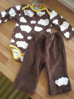 Vielä miehen siskon uusimmalle tulokkaalle body ja housut. Pilvikangas ihania Ikasyrin kankaita, toivottavasti vaan värit säilyisi hyvänä... Kaavat Ottobresta.